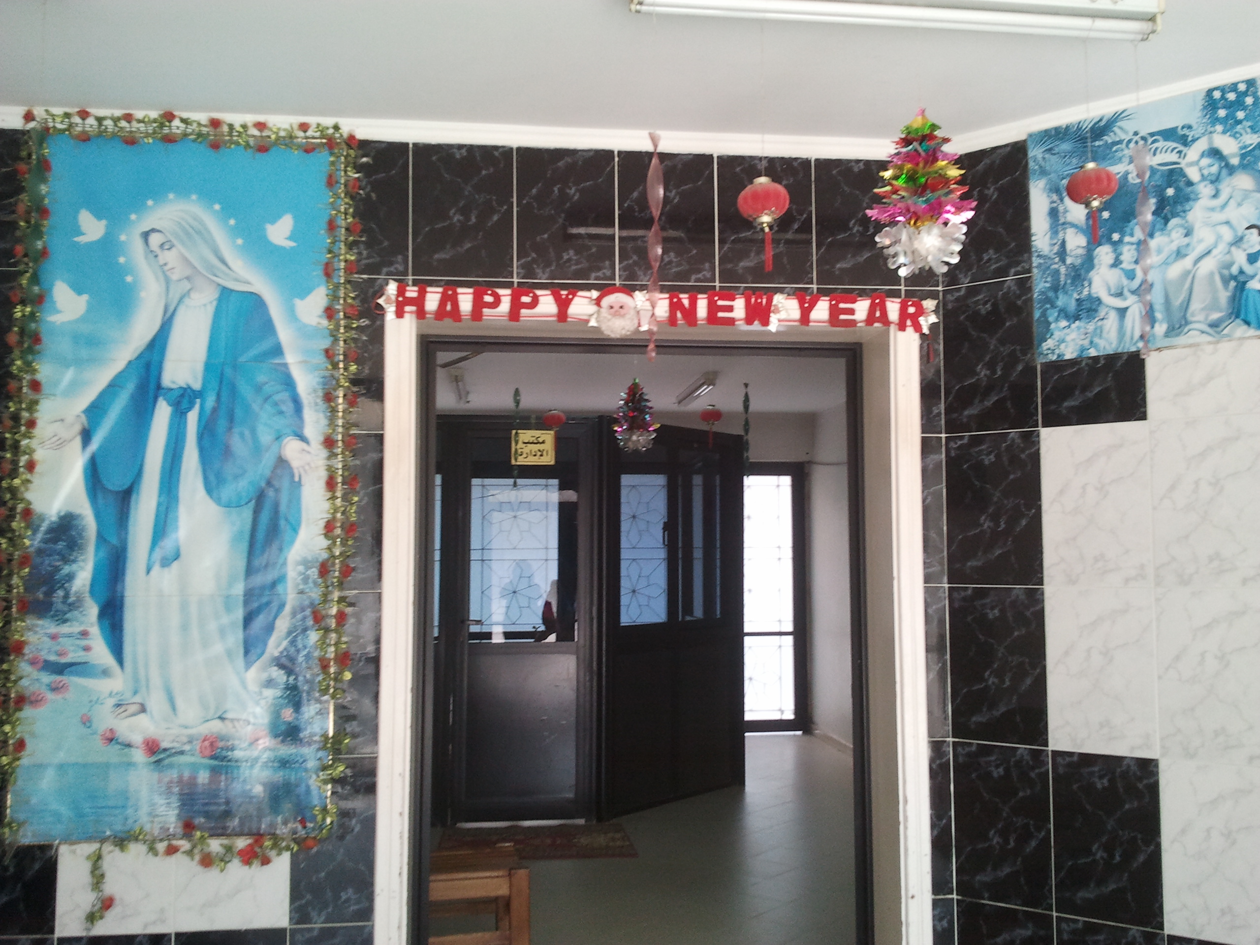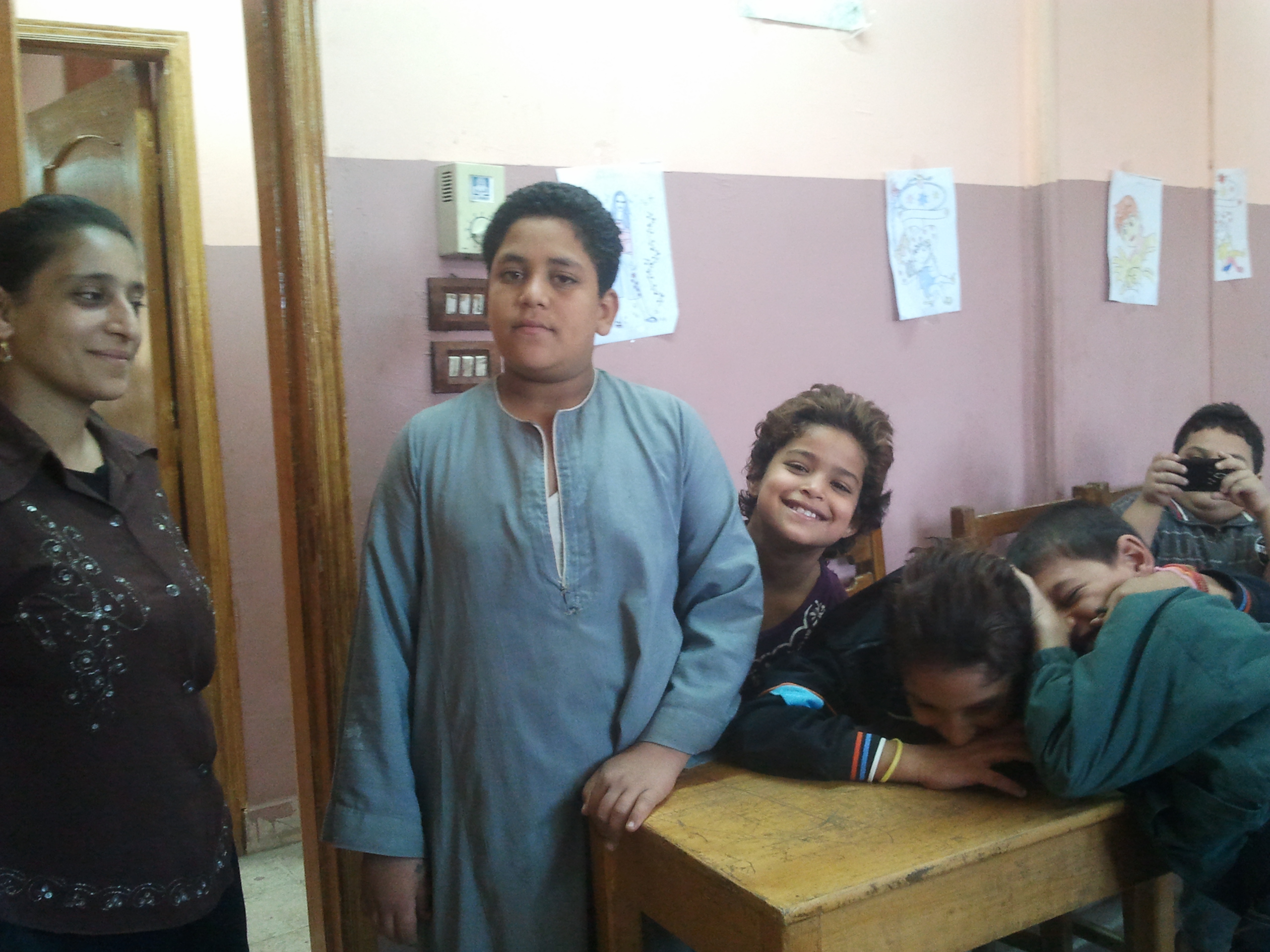 At the very beginning of the evening, we always pray in the classroom. Reda has taught me to stand facing east with the students, and we make the sign of the cross as we say “In the name of the Father, and the Son, and the Holy Spirit. One God, Amen.” The same thing happens with the sixth graders at the end of the evening, at 8 pm. Then I pray in English, saying whatever I feel like saying, and the children recite after me. Then Reda and the children recite blessings together.
