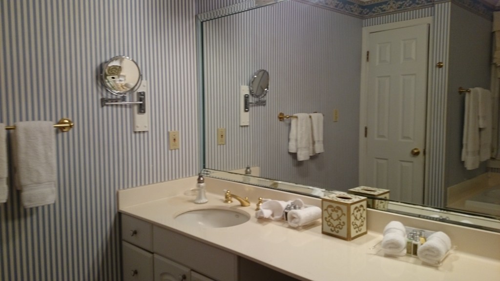 Our rooms are also elegant and grand. I get to sleep in a four-poster bed so high I can hardly climb in! The bathroom toiletries are from Occitane. I feel like Scarlet O’Hara.