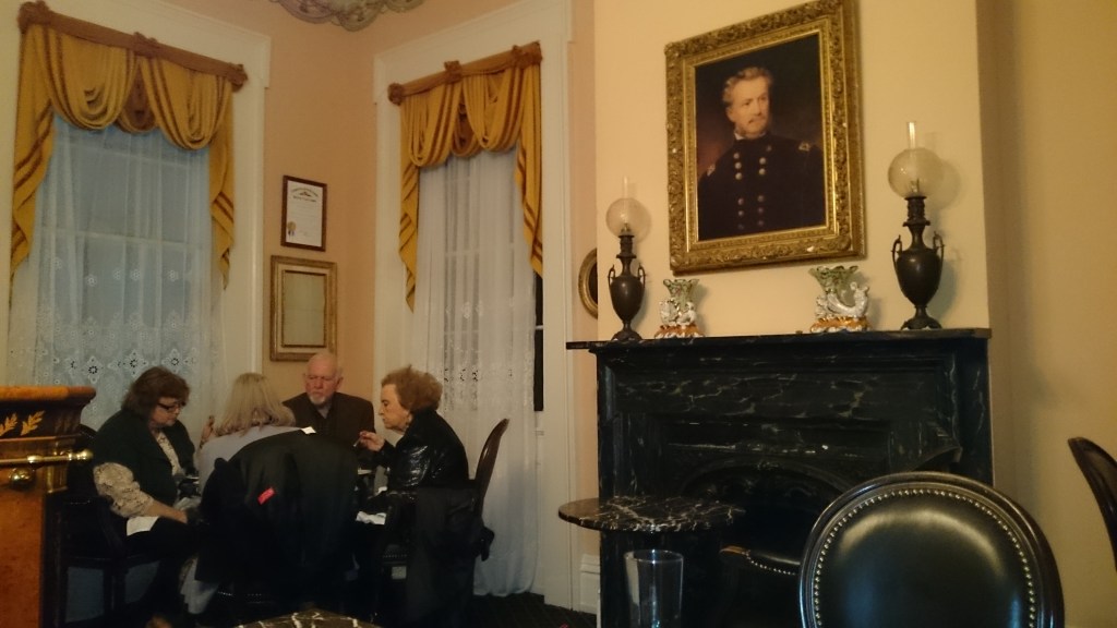 Early in the evening Robert and I walk to the buiding where aperitifs and snacks are being offered. On the wall hangs a portrait of the man who owned and developed Monmouth during the Civil War – John Quitman. We learn that he was the Governor of Mississippi at the time he owned this house.